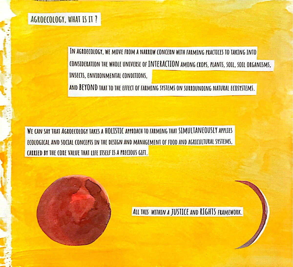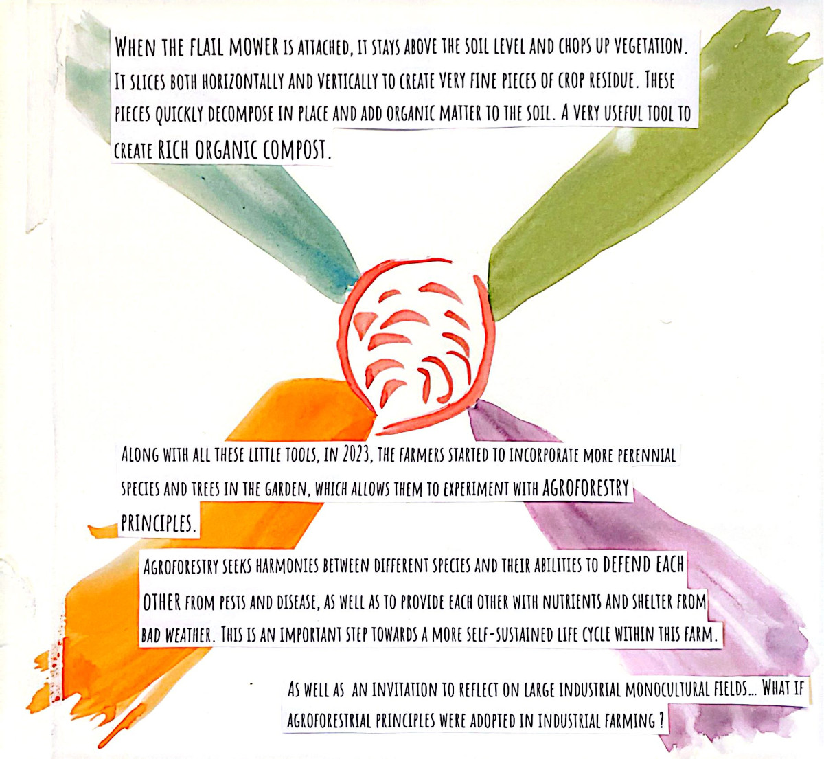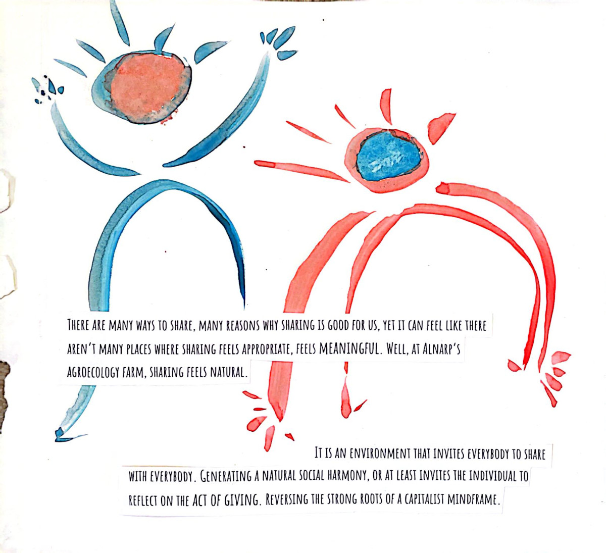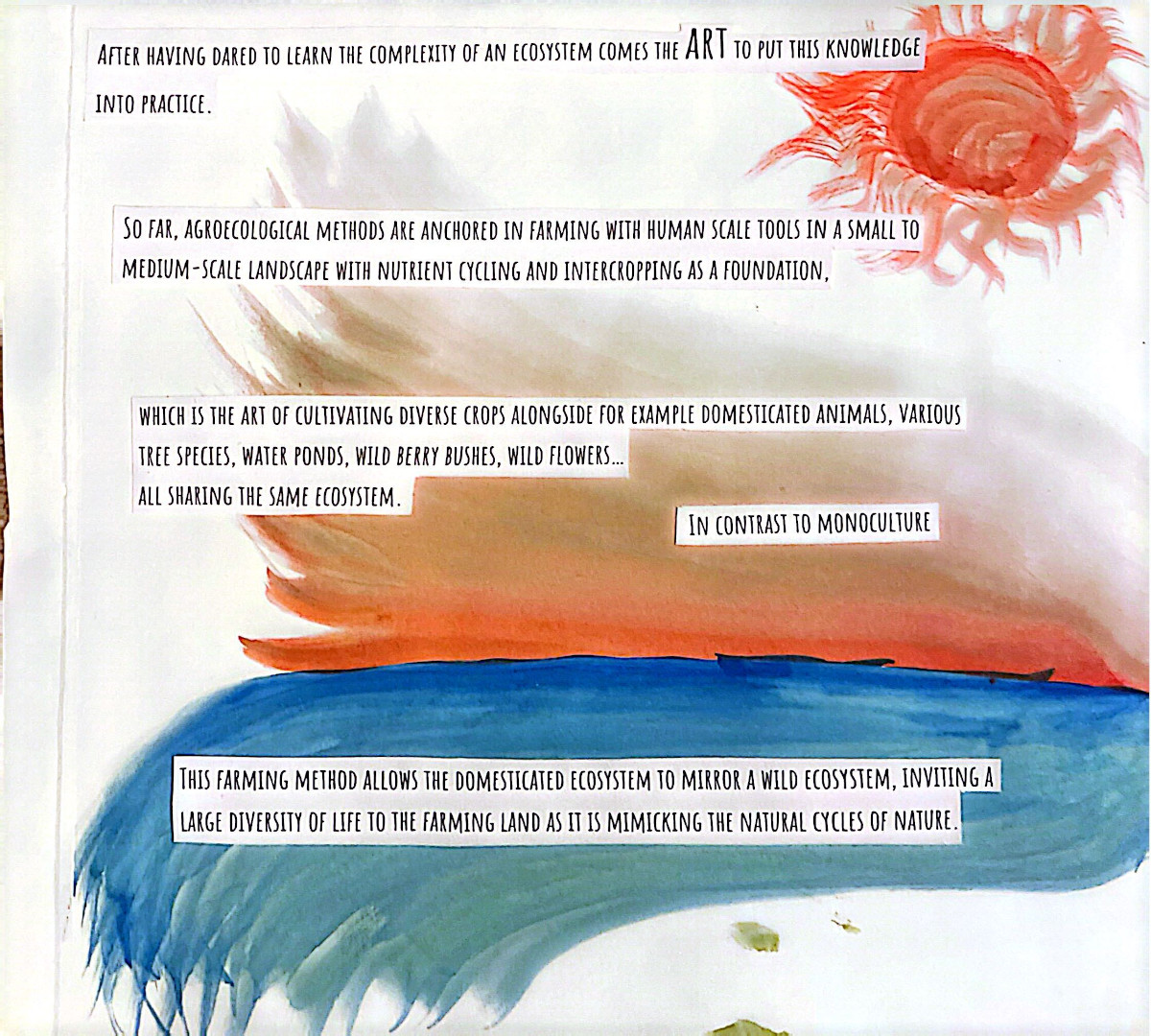 This grew out of two months alongside people who care deeply about food, land, and community. Seeds were planted...and many learnings, realizations, and watercolor brush strokes here come together as a way to lift eco-social and activist practices that bring attention to human life in relation with nature, in an ever so fast-paced society. A relation that is crucial for our well-being and survival, and it asks us to return to it with more care.