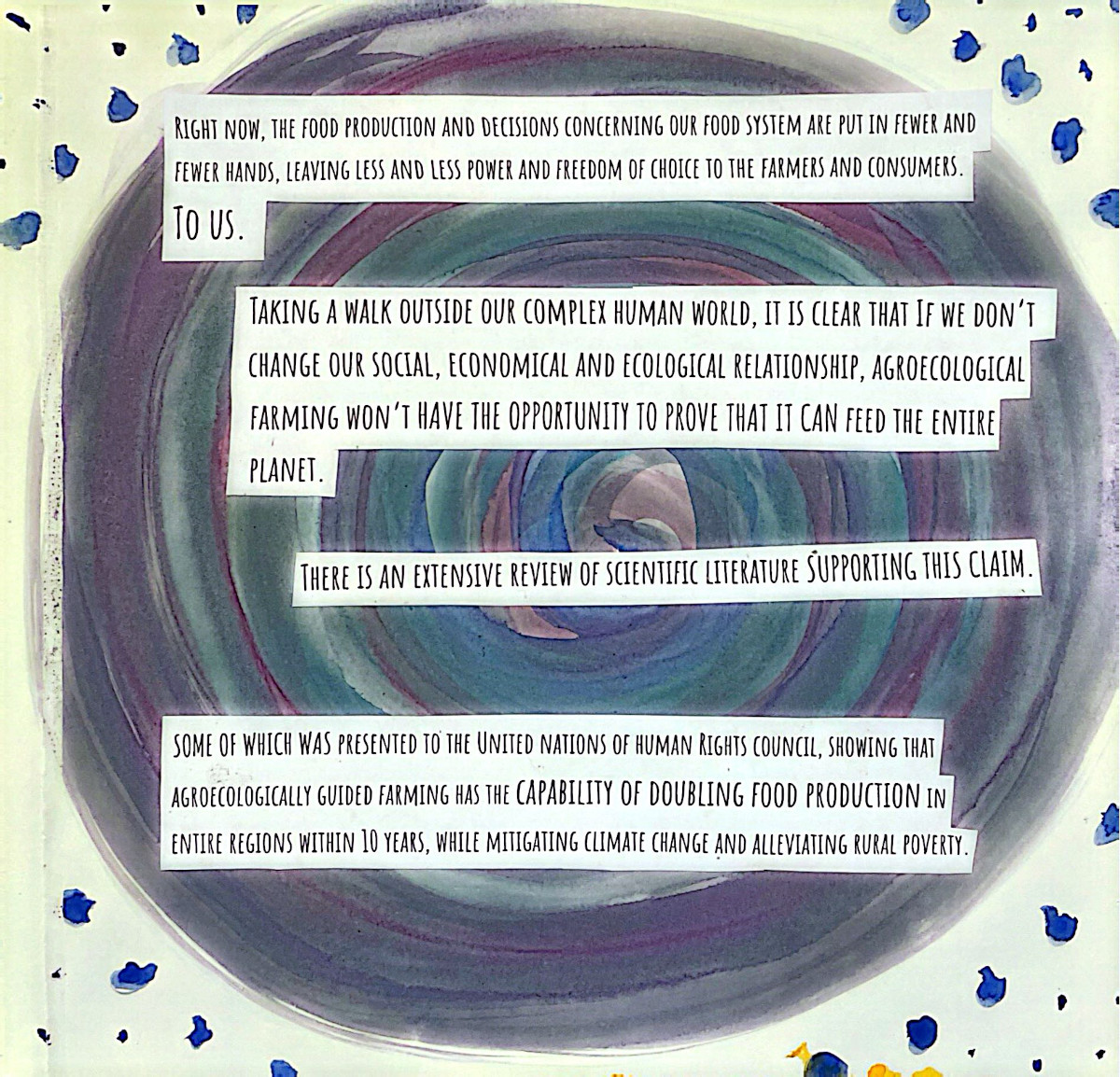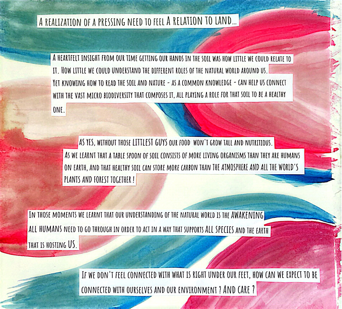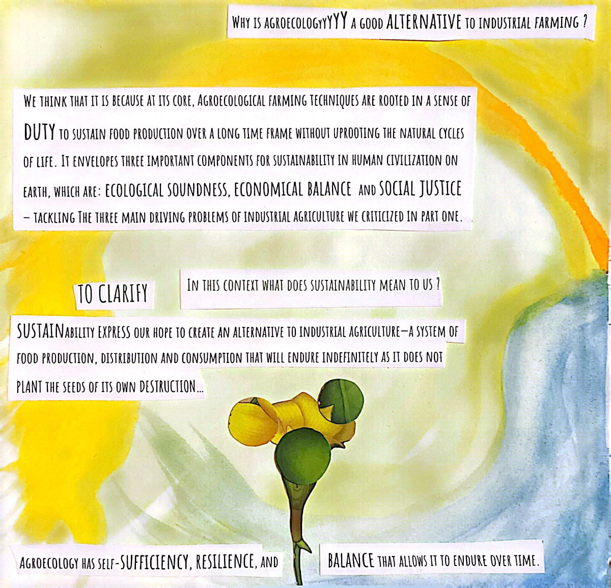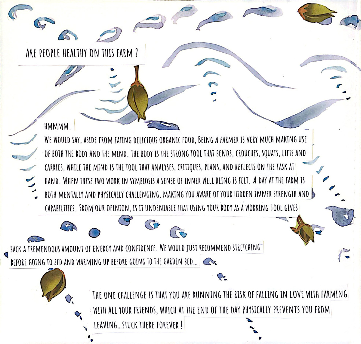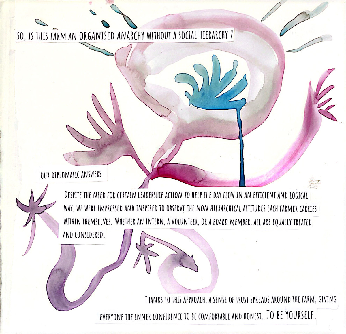 This grew out of two months alongside people who care deeply about food, land, and community. Seeds were planted...and many learnings, realizations, and watercolor brush strokes here come together as a way to lift eco-social and activist practices that bring attention to human life in relation with nature, in an ever so fast-paced society. A relation that is crucial for our well-being and survival, and it asks us to return to it with more care.